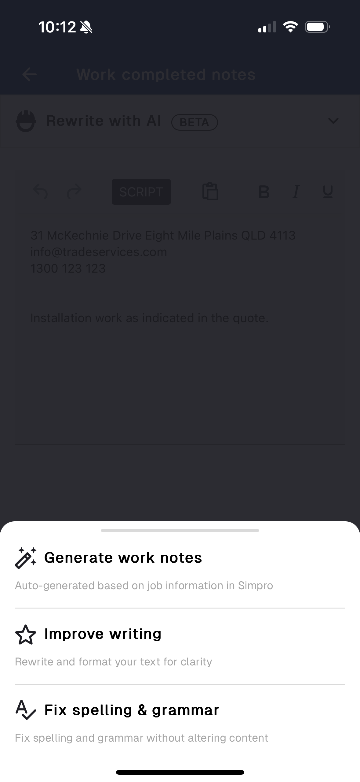 Use the Service module in field to access current project information and manage quote / job work in real time. Field technicians can easily enter clock in and clock off times, parts used, view / upload linked documents, and email job cards when the job is complete.